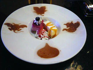 伝説のディナーコースをいただく。 日常生活。 2015年04月12日 こんばんは。珍しく旅行ブーム到来中の管理人、きりです。今までたまに姉と一緒にドラゴンクエストをモチーフにしたカフェ「Luida's Bar」に行っていたのですが、そこで手に入れた「大きなメダル」を使用して「伝説のディナーコース」をいただいてきました。▼会場は地下の特別ルーム!常に正面の大きな画面でCMが流れています(´∀`*)ちなみに普段は5人以上の場合のみ予約が取れる部屋だそうです。個人的にはシアトリズムドラゴンクエストが発売した直後なのに何でCM無いのかなぁと不思議に思っていました。音量は大きめに設定されていたので、こっそりダウンwwもともと大人数向けの部屋なので、姉と二人で入るとすごく広く感じました。部屋に案内されると簡単に説明を受けて、続いて料理が運ばれてきます。ドリンクは備え付けの電話でおいてあるメニューから好きなものを注文します。(Luida's Barのメニューではなく、居酒屋のドリンクバー的な物だと考えていただければ)▼オレンジジュースとサラダ。なお、前菜盛り?は撮り忘れました\(^o^)/▼メインディッシュビーフステーキとピーマンときのこ、スライム型のトルティーヤ。写真だとよく見えませんがお肉にロトの紋章を焼印してあります。▼デザートプレート。モンスターのシルエットをあしらったお皿にかわいいケーキが2つ。▼お皿のココアでデザインされたスライムを削って、イチゴソースを口部分に入れてなんとなくスライムを再現(笑)料理をお腹いっぱい食べて、デザートを食べて満足しつつおしゃべりをしていると、ドリンクのラストオーダーの時間になりました。……しかしその後、予想外の事態が……。▼ギガンテスのこんぼう×2(二人前)▼マドハンドカレー×4(二人前)Σ(゚Д゚ )エッまさがデザートの後にこんなヘビーなものが来るとは。。。幸い普段は甘口しか食べない私たちでも食べられる辛さのカレーでしたが、とにかくこの時点でお腹いっぱいだったため食べるのがつらいのなんの。来る前に「来たいな~」と言っていた母を連れてくれば良かったと思ったくらい量が多かったです^^;普段は料理を残さないよう意識している私ですが、さすがにギブアップ。本当にお腹いっぱいでした。。。ごめんなさい(´・ω・`)。でもとっても満足でした。またメダルを溜めて行きたいな~! PR