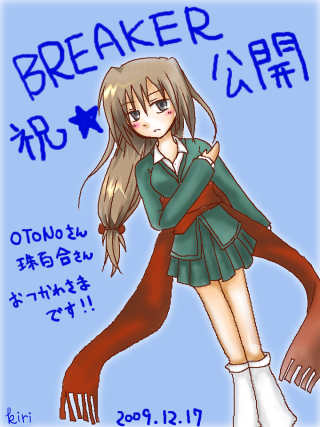 お披露目。 ゲーム関連。 2009年12月17日 今晩和。基本的にR15指定のモノは((゜Д゜;))な管理人、きりです。今日は……と言っても、これを書いているのはもう次の日なのですが、私もさりげなくデバッグ作業に参加しました、サークルPhysicsPointさん制作のゲーム「BREAKER」が、本日(17日)公開されました!!日々の日記で「某破壊活動」と称していたのはBREAKER(破壊者)のデバッグ作業のことでした☆というわけで、とってもやっつけ仕事で申し訳ないのですが、お祝いに主人公の祈を描かせていただきました!祈んかわいいよ、祈ん!!(破壊ちなみにR15指定です。プレイの際は流血表現にご注意を!まぁ、グロ系が駄目な私でもプレイできたので、一般の方も普通にプレイできる……かな?戦争や人の心を扱うシリアスな物語ですが、今の世界と重なる部分もあり、平和についても考えさせられます。是非プレイしていただきたいです。