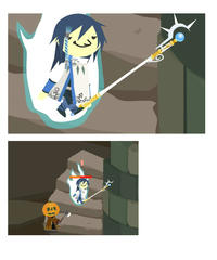 スーパーシャスラタイム。 ゲーム関連。 2010年06月20日 今晩和。春雨大好き管理人、きりです。茹でた春雨とささみと人参ともやし、スライスキュウリにしょうゆとごま油と砂糖で味付け。これでおいしい中華風春雨サラダの完成!……明日の弁当のおかずです。さて、今日はゲームの話だけなので、分かる人にしか分かりません^^;先日(15日だったかな?)よりPuppetGuardianでエンディングイベントが始まりました。落ちまくるサーバと格闘しながら、限定アイテムを求めてトーヤ君で出陣してきました。▲オーラと共に登場するラスボス、シャスラ(上)と、カボチャ頭で応戦するトーヤ君ww(下)シャスラの衣装って、よく見ると結構凝ったデザインですねぇ……。補足しておくと、シャスラ(ラスボス)の目的は地下に登場 ↓階段から地上へ ↓地上に建っている城へ ↓城の屋上にある「復活の実」ゲットです。私たちプレーヤーは20時間ごとに大量に現れるモンスターとシャスラが屋上にいく事を阻むのが目的となります。しかし今回の戦闘ではシャスラが階段を登れないというバグらしきものがあり、階段に辿り着いたシャスラはずっと階段で行進している状態でした;ひっかかってしまったのでしょうか……。まぁ、そのお陰でスクリーンショットが撮れたんですけどね^^攻撃も当たらなくなり、しまいにはなぜか自動的にシャスラの体力が1ずつ減っていきました。そんな不憫なラスボスに向けて、プレイヤーの中から温かい?声が飛びます。「荒ぶるシャスラww」「かわいそうだから上に行かせてあげてww」「よく見ておけ、シャスラのサービスタイムだよ」などなど……。結局、私はサーバとの接続が切断されて、復帰した頃には戦闘が終了していたので彼がどんな最後を迎えたのかは分かりません。まぁ、20時間後にはまた何食わぬ顔で地下から登場するのでしょうが。