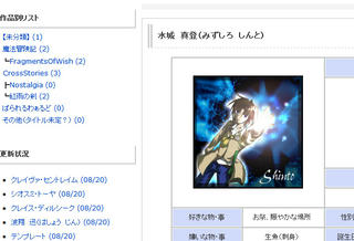こんなのモリモリ作ってます。 日常生活。 2012年08月20日 こんばんは。だるくて眠い管理人、きりです。どう考えてもこれはYASUMIBOKE☆ですねわかります!!!久々の仕事……とはいえ今日はずっとお勉強でしたが疲れましたー。そして帰宅時から眠かったのにまだ起きてますー(現在0:10)これ書いたらさくっと風呂入って寝よう……。こんな時間まで何してたかというと、こんなの作ってました。↓創作好きだけど私の作品は大体自己満足で終わることが多いので、キャラとか誰も知らないだろうなーでも少しは出していきたいなーと思って少しはキャラ紹介というものを作ってみているわけです(`・ω・´)真登君だけ既存の画像入れてみたけど、基本的にはじめはみんな「のーぴくちゃー」です。画像は後で少しずつ描いて足していければいいなと思います。まずは内容!クレイスさんの苗字とか今まで伏せてたけど、ストーリーちょっと変えて何とかなりそうだったのでオープンにできそうです。というか画像ですでにしています(笑)初めは普通にHTMLで作っていたのですが、バランスとか見た目とか、複数作品にまたがって登場している人どうしようとかまとめ方とか考えてはまとまらず、作業が進んでいませんでした。でも、昨日の記事で描いた通り、ブログ使ってできないかと思い試したところなかなか良い感じになったというところです。明日もこの作業進めようと思いますー。なかなか楽しいぞwwヽ(・∀・*)ノ PR