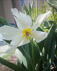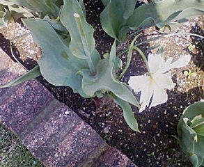 新種発見。 日常生活。 2007年04月28日 今日は充実した一日だった……←午前十時まで寝ていた上、昼寝二時間。今晩和、蜘蛛の巣を作っている光景を見て鳥肌が立った管理人、きりです。今日は完全なるお休みだったのでヒッキーしようと思ったのですが、あまりに良いお天気だったので家の庭を散歩いたしました。我が家には小さい花壇と小さい畑(プチ家庭菜園が出来る程度)があるのですが、今年はそこにチューリップが植えてあるのですよ。しかし……その中に見慣れぬ花が。。。少し眩しいですが、写真右の方のが問題の白い花です。葉っぱや柱頭の作りはまさにチューリップなのですが……これはどう見ても……チューリップではないでしょう(汗。下向きに花が咲いているし、花が広がりきっているし……。しかも一本じゃないんです。あと一本、つぼみがあるんです。これは新種でしょうか……。 PR