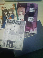 PPのお二方、ありがとうです。 日常生活。 2010年05月04日 今晩和。実家から戻って参りました管理人、きりです。5日ではなく4日に戻ってきた理由……それは本日開催されたコミティア92(自主制作漫画誌展示即売会)に行こうと決めていたからです。なんとなんと、いつもお世話になっている珠百合さんが所属するサークルPhysicsPointさんが参加するということで、12月に行けなかった分これは行かねばならんと思っていました^^現在住んでいるところから近いということもあり、移動も楽々でした。こういうときは「都会に住んで良かった」って思います。▲入手物!(「ふたごまみれ」はお二方のご厚意で無料で頂きました、しかも最後の1冊というぎりぎりな状況ww本当に、本当にありがとうございました!!)握手もしていただき、珠百合さんは祈と律、OTONOさんには誡さんを描いていただきました。宝物!!実はこういうイベントに一人で行くのが初めてだったので、スケブ依頼等の知識が全くなく、失礼がなかったかが心配でした^^;漫画や同人関連だけでなく、オリジナルのグッズ(アクセサリーなど)を販売している方々もいました。また次があったら行きたいです^^その時はお菓子作って行けたらいいなぁ……(・∀・*) PR